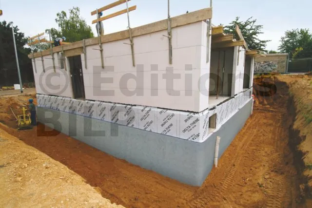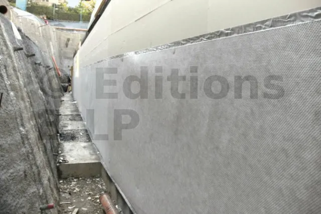 - MatériauNappe à excroissances en PEHD à alvéoles octogonales associée à un géotextile filtrant hydrophile PP
