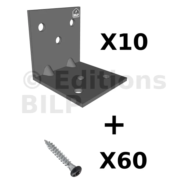 - Vis CSA5.0X35PB (60 fournies par blister pour 10 équerres).