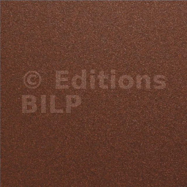 Effet corten (rouille), texturé pour plus de réalisme. Coloris évoquant aussi un bois exotique.