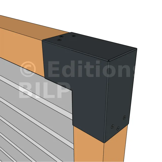 Il est utilisé dans un angle extérieur. Ce connecteur va permettre de raccorder une poutre 90x90mm perpendiculairement à une autre poutre ou à un poteau vertical 90x90mm.