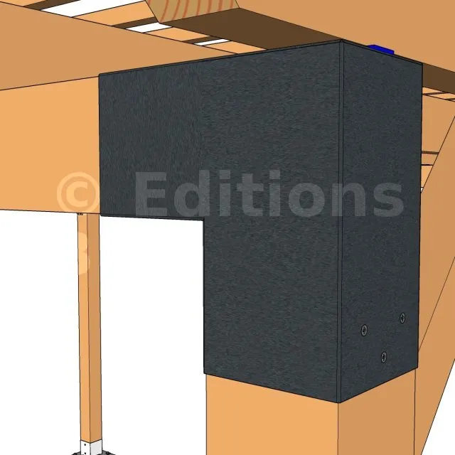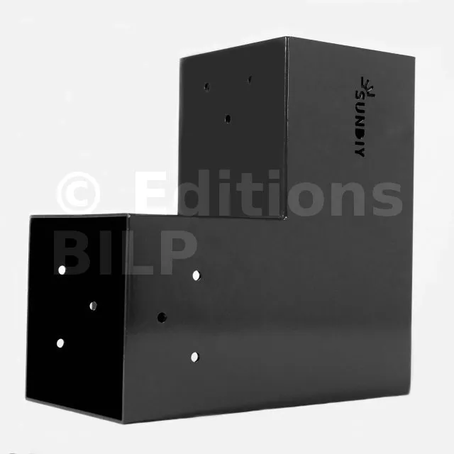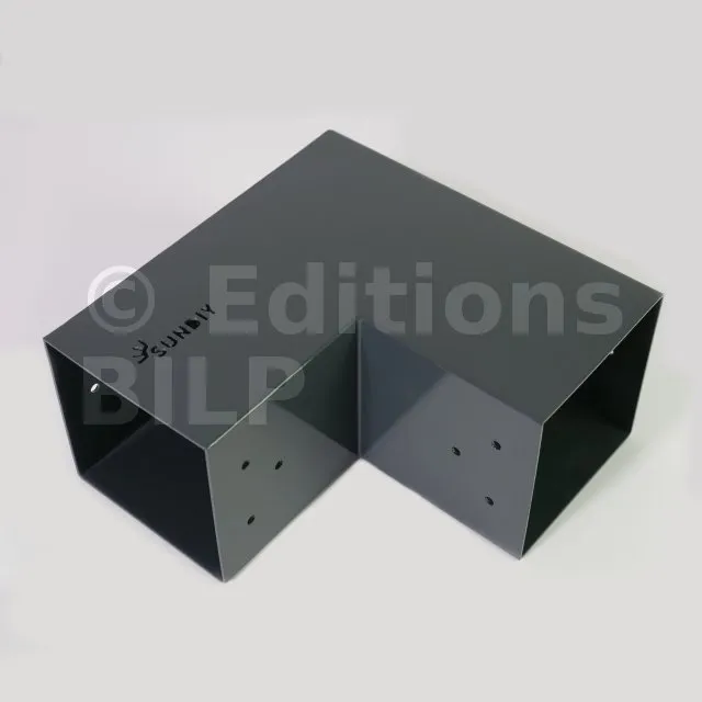 Il est utilisé dans un angle extérieur. Ce connecteur va permettre de raccorder une grosse poutre 120x120mm perpendiculairement à une autre poutre ou à un poteau vertical 120x120mm.
