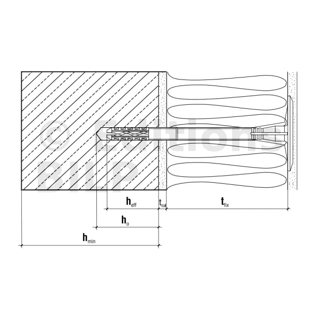 - Profondeur d’ancrage (hef)Support de type A, B, C, D : 30mm ; support de type E : 50mm