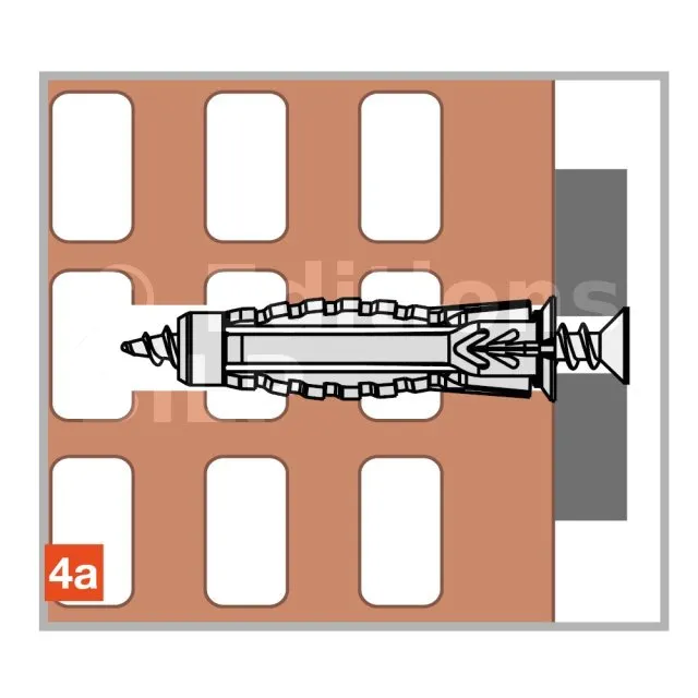 - Forme conique et ailes sous tête, permettant un excellent maintien de la cheville même si le perçage est irrégulier,