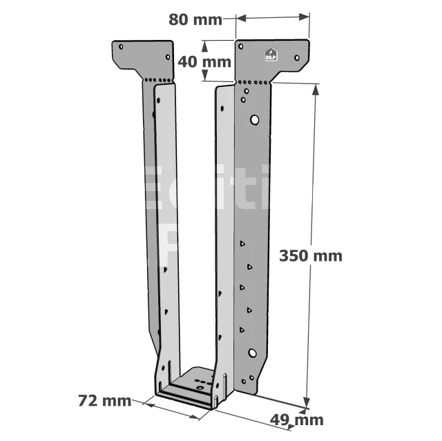 - Étrier fourni avec ses brides supérieures droites, pliables sur chantier afin de s’adapter à toutes les hauteurs de solives,