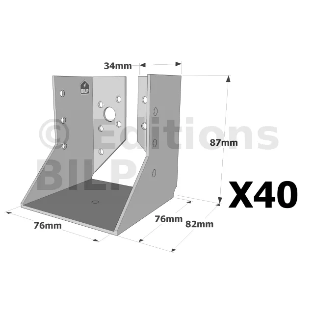 On admet une tolérance de 2 mm maximum entre l‘épaisseur du bois et la largeur du sabot. Exemple : un sabot plié à 76 mm peut porter une épaisseur de bois de 74 mm.