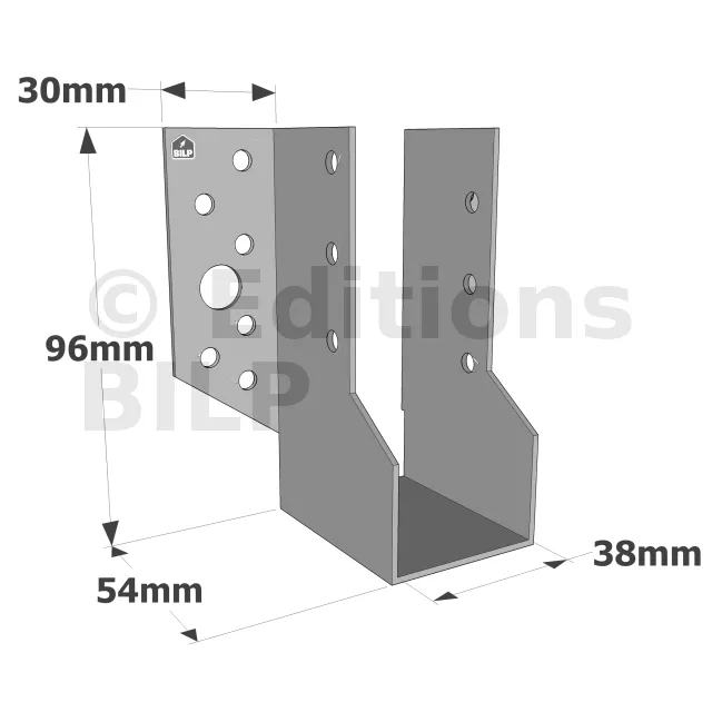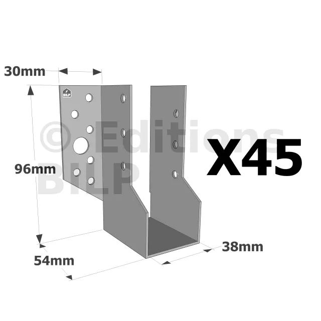 Sabots à ailes extérieures, gamme SBE ECONOMIQUE (épaisseur 1,5mm, profondeur 55mm) - Réf. SBE38/96_45