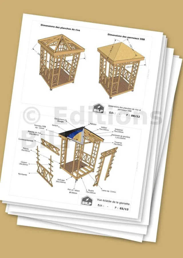 On vous propose aussi plusieurs modèles de plans de gloriette que vous pourrez télécharger avec le guide.