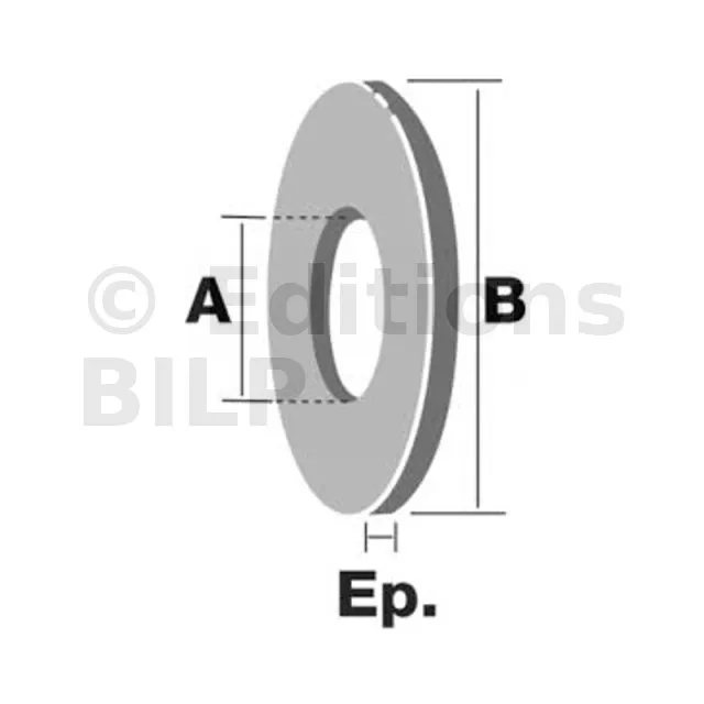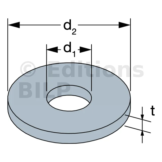 | Références | Ø intérieur d1 [mm] | Ø extérieur d2 [mm] | Épaisseur t [mm] | Ø boulon |