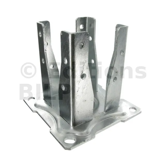 Pied de poteau carré ouvert pour jardin - Finition GALVANISEE