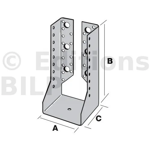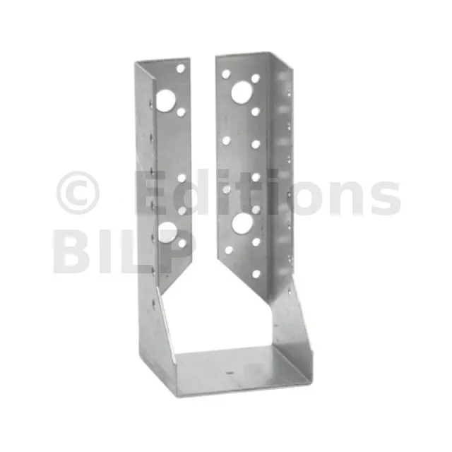 - Robustesse et discrétion : Grâce à leur conception en acier galvanisé, ces sabots sont robustes et résistent aux conditions climatiques difficiles. Les ailes intérieures permettent une intégration discrète, préservant l’esthétique de la structure.