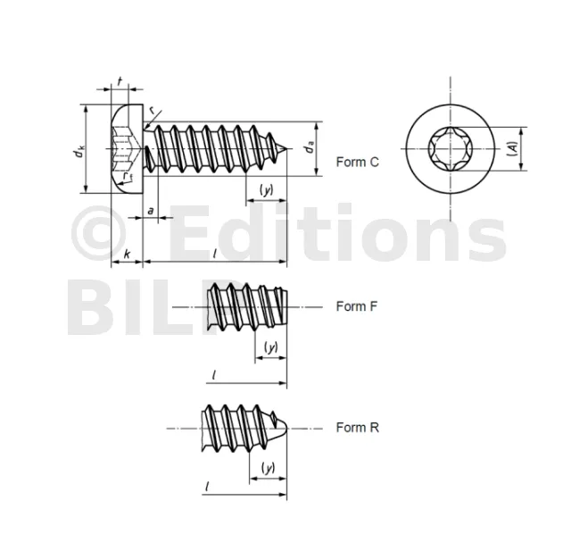 Vis à tôle à tête cylindrique bombée large - empreinte TX - Réf. 145854201304