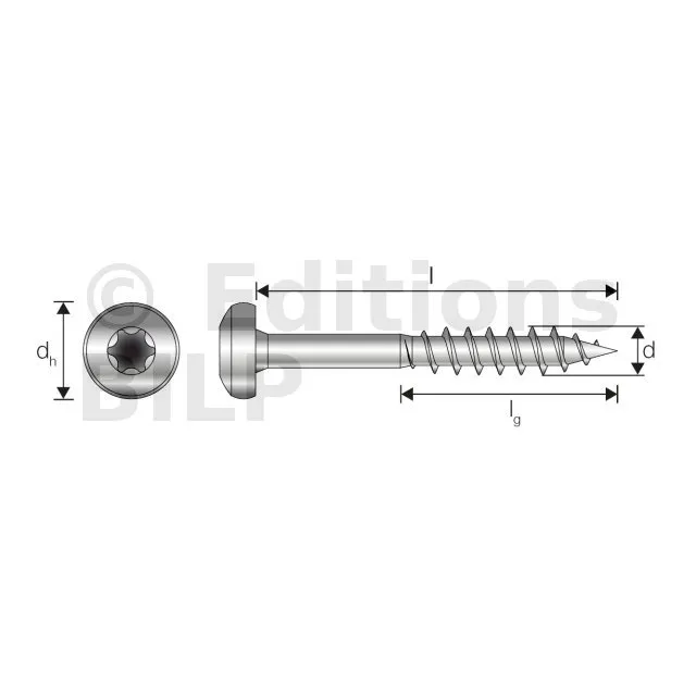 Vis bois tête bombée (fixation d’élément ACIER sur BOIS) - 4.0x30mm - INOX A2 - Réf. 77923