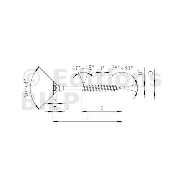 Vis à bois à tête fraisée - empreinte TX - INOX - filet partiel - Réf. 91350503504