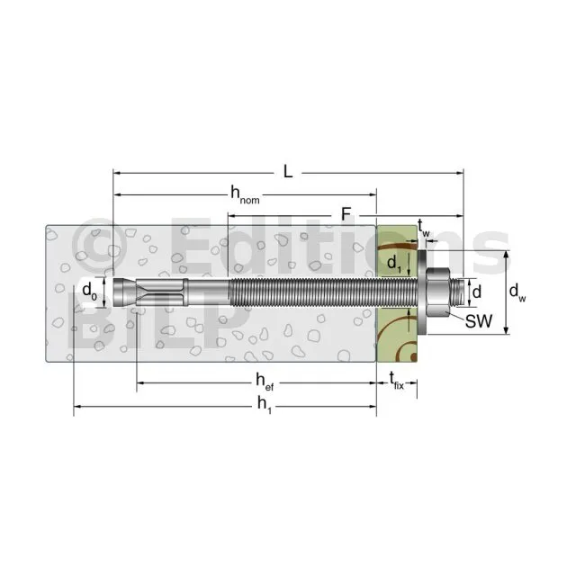Goujon d’ancrage - Rondelle large - FM753 EVO LW M12X149 - Réf. 75345B1214900