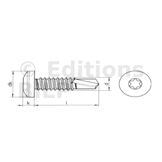 Vis autoperceuse à tête cylindrique bombée large empreinte TX INOX - Réf. 91664803202