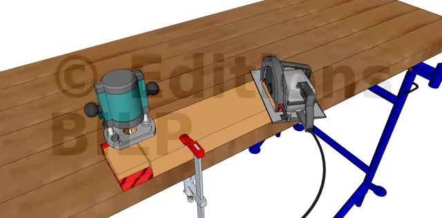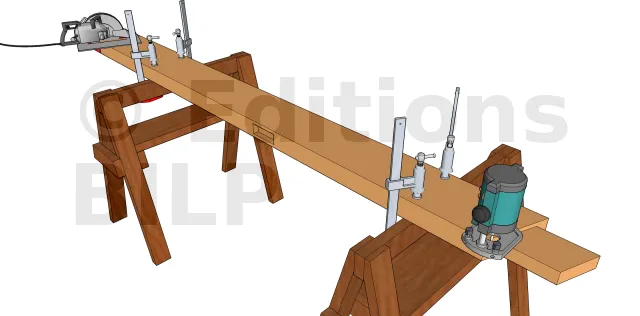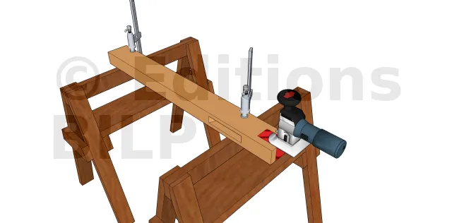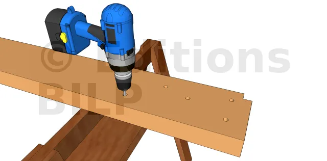- Préparer la mortaise oblique pour fixer le contrefiche. Cette étape est à sauter dans le cas d’une fixation par plaque métallique.