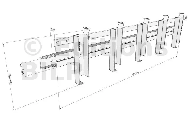 Distance entre les supports : À supposer que le mécanisme est fixé entre deux poutres, la distance entre ces deux poutres doit être égale à la longueur des lames + 35mm : 2 X 15mm (largeur du corps de mécanisme) + 5mm de jeu.