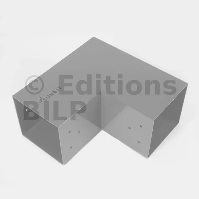 Il est utilisé dans un angle extérieur. Ce connecteur va permettre de raccorder une poutre 90x90mm perpendiculairement à une autre poutre ou à un poteau vertical 90x90mm.