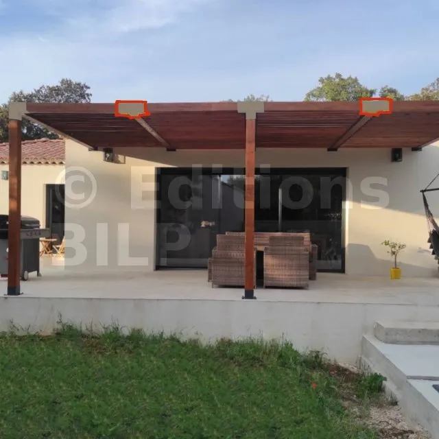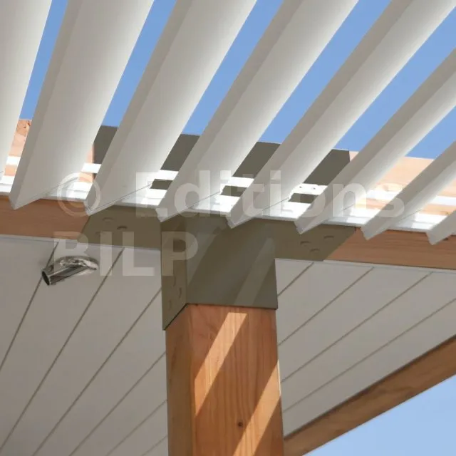 Il permet également la connexion d’une longue poutre de 120x120mm à un poteau intermédiaire de 120x120mm.