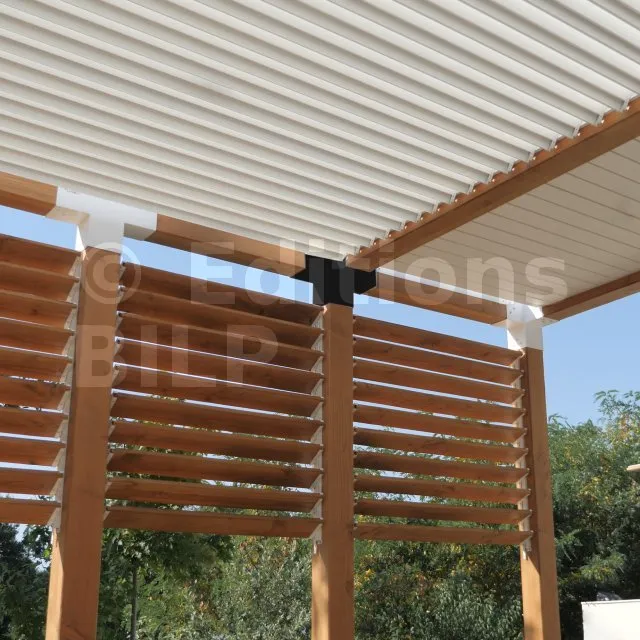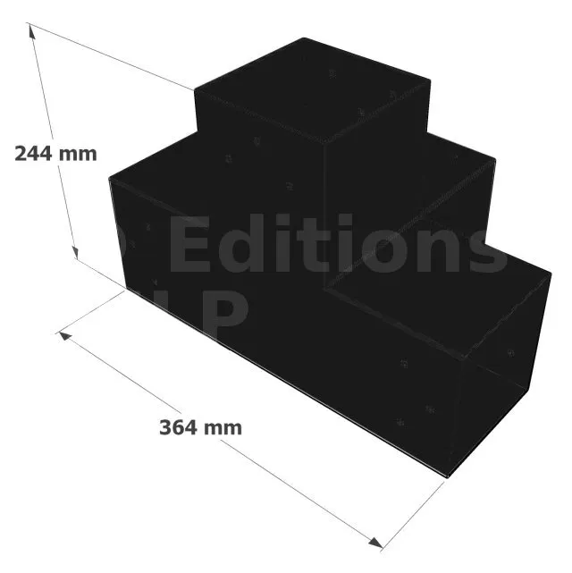 Il permet de raccorder une poutre de 120x120mm perpendiculairement à un chevron de 120x120mm, le tout étant supporté par un poteau vertical de 120x120mm.