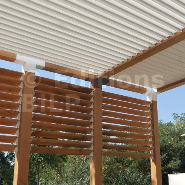 Il permet de raccorder une poutre de 120x120mm perpendiculairement à un chevron de 120x120mm, le tout étant supporté par un poteau vertical de 120x120mm.