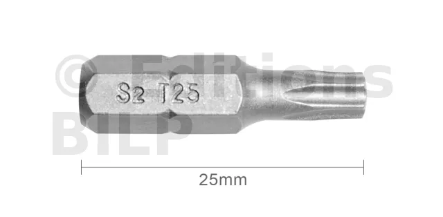 Embout T25 25mm (Qualité Professionnelle, Acier S2) - lot de 1 embout - Réf. EmboutT25_1