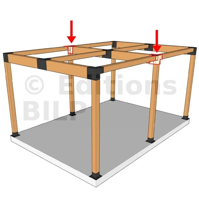 Il permet de raccorder deux poutres 120x120mm perpendiculairement à une grosse poutre 240x120mm, SANS être soutenu par un poteau vertical.