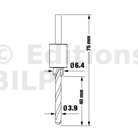 Foret aléseur - Diam. mèche : 3.9mm, Diam aléseur : 6.4mm - Réf. DBWOODDSPRO_1