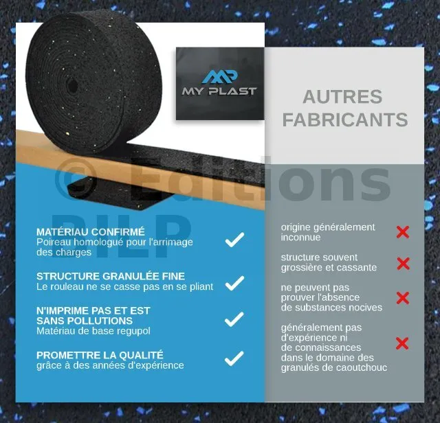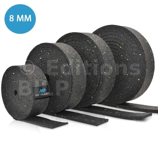 Rouleau de protection SOUS lambourde en granulé de caoutchouc – 10 m × 50 mm × 8 mm - Réf. MY-P-5000x80x8
