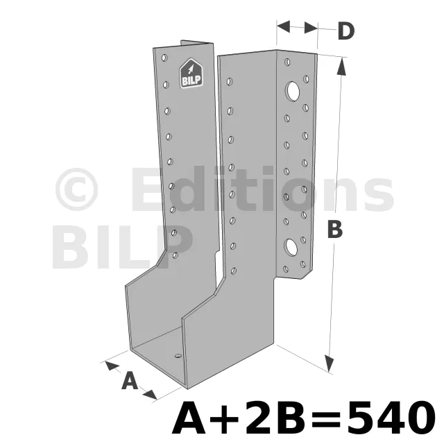 Grands sabots à ailes extérieures, gamme GLE ECONOMIQUE (développé 540mm, hauteur 235mm, épaisseur 2.5mm, profondeur 90mm) - Réf. GLE540/32/2.5