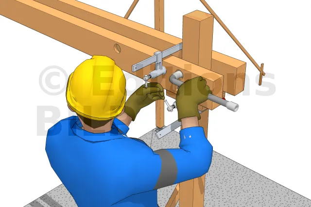 3. Si le support est en bois, l’équerre est aussi pointée ou vissée sur celui-ci.