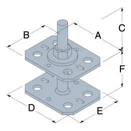 Pied de poteau mini réglable, hauteur (B) : 30 à 90mm, cdt : 10 pièces - Réf. APB7090/100_10