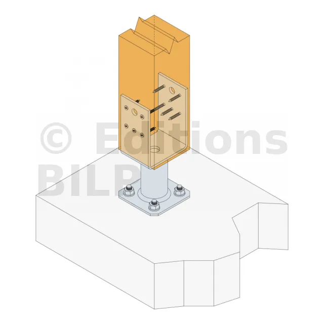 - Connexion bois sur support rigideSur poteau : 10xCNA4.0x40 Sur béton : 4Ø10