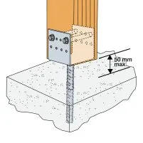 La distance entre la platine et le béton doit être de 50 mm maxi.