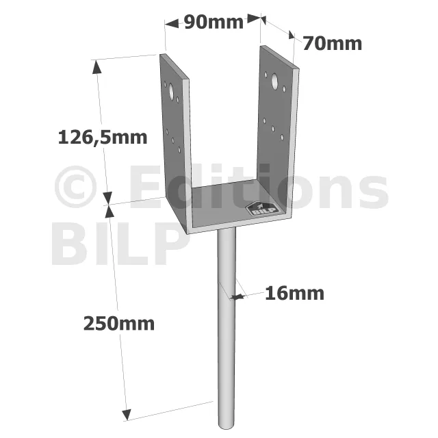 Pieds de poteau en U à sceller - Réf. PPD90/70G