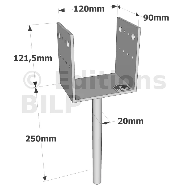Pieds de poteau en U à sceller - Réf. PPD120/90G