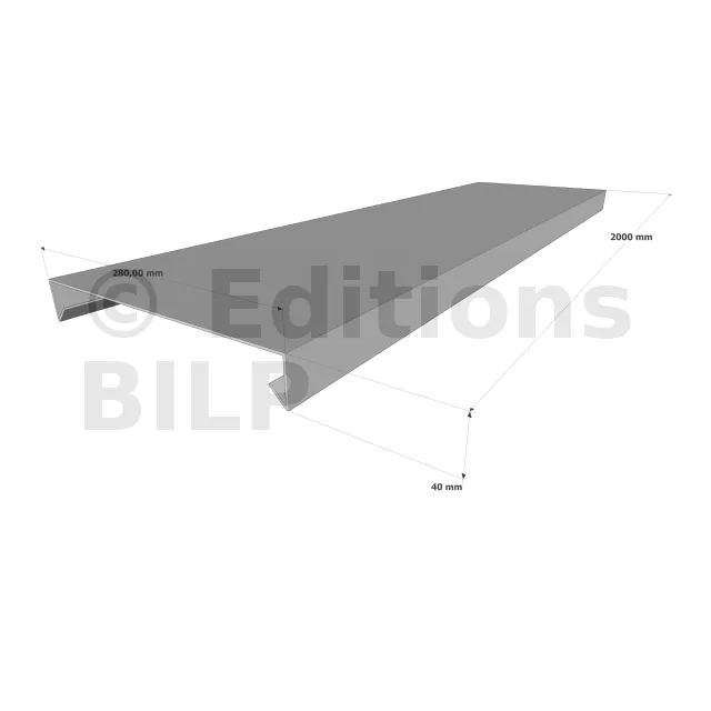 Couvertine d’acrotère plate - Gamme 280 - Aluminium 15/10 - Longueur 2000mm - Réf. CP15-280-2000