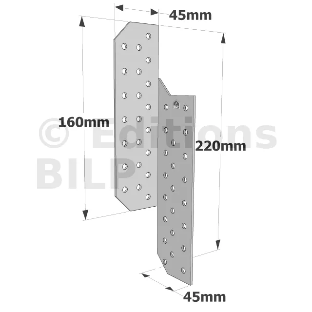 Patte de solivage DROITE - 45x220x2mm - Réf. PSD220/45/2_10
