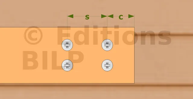 - Fixation bois/bois - type poutre/poutreAile B : 7 ; Aile C : 4 ; type : CNA Ø4.0x35 ou Ø4.0x50 mm - Assemblage avec 2 équerres