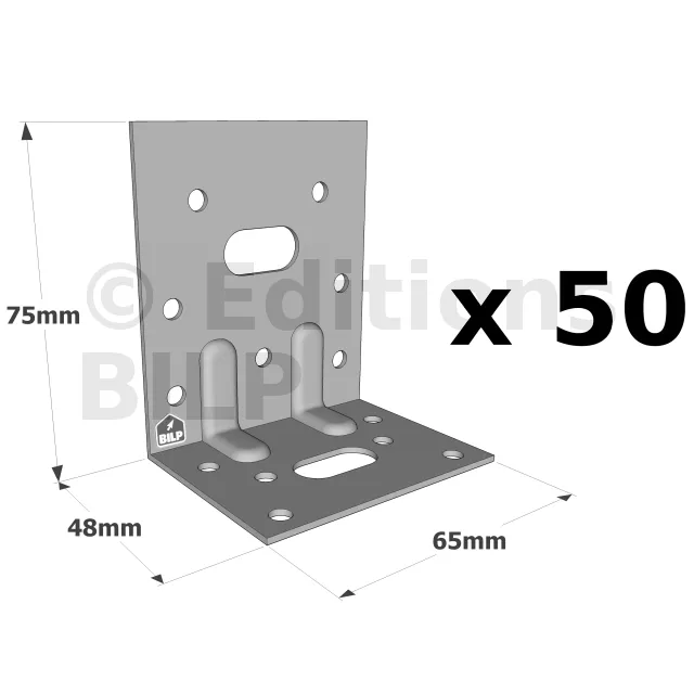 Équerres renforcées CLASSIQUES asymétriques pour le BOIS et le BETON - Réf. E5/2_50