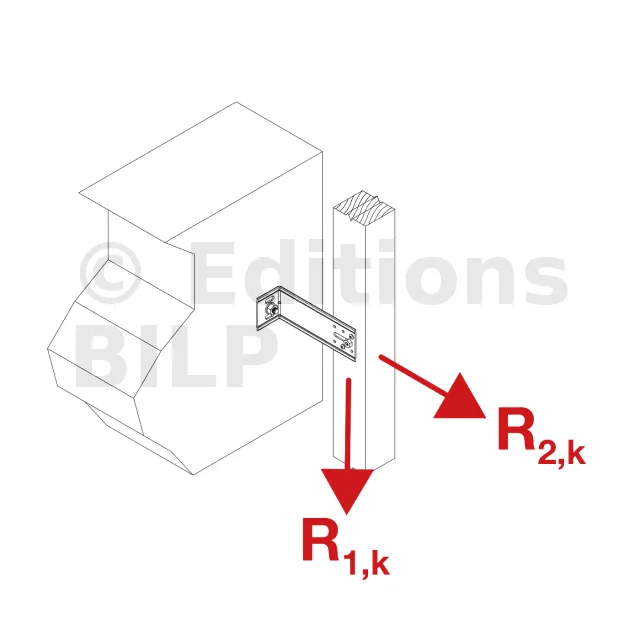 - Connexion bois sur support rigideAile A : 1LAG Ø8,0x50 et 2CSA Ø5,0x40 ; Aile B : 1Ø8 (goujon WA, Cheville à frapper HIPC ou tige filetée LMAS)