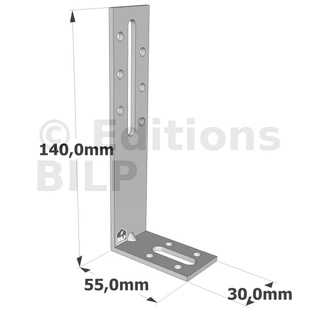 - Trous oblongs facilitant l’ajustement des assemblages,