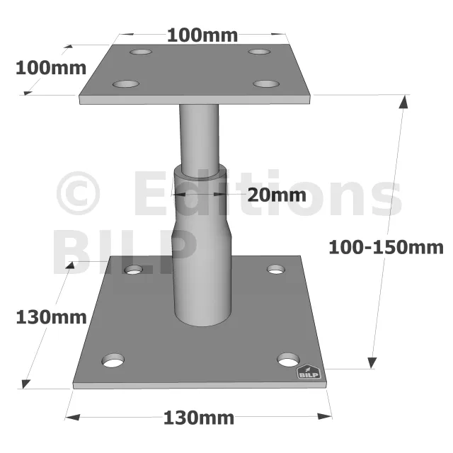 - 1 pied de poteau APB100/150 acier éléctrozingué,