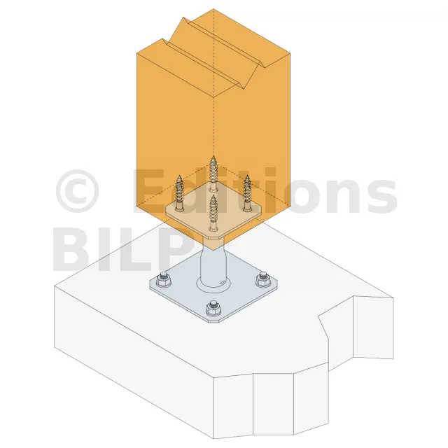 2. Fixer cette platine au poteau à l’aide de tirefonds LAG (pré-perçage nécessaire).