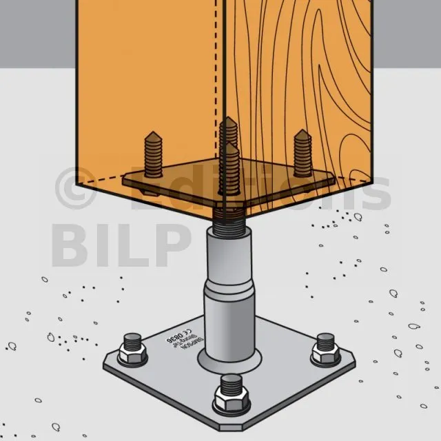 Ce pied de poteau est réglable en hauteur. Simple et rapide à installer, il peut être réglé sur le chantier.