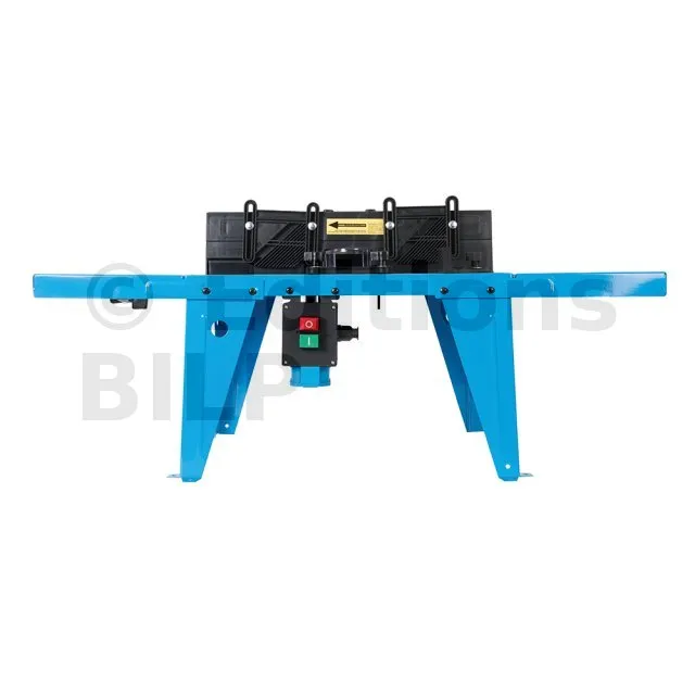 - ContenuTable en fonte d'aluminium ; 2 x Rallonges de table ; Manuel d'instructions ; Rapporteur ; Boîtier de commande ; Dispositif de serrage pour gâchette de défonceuse ; Guide principal ; Guide ajustable ; Protection ; 2 x Peignes verticaux ; Peigne horizontal ; Table de défonceuse