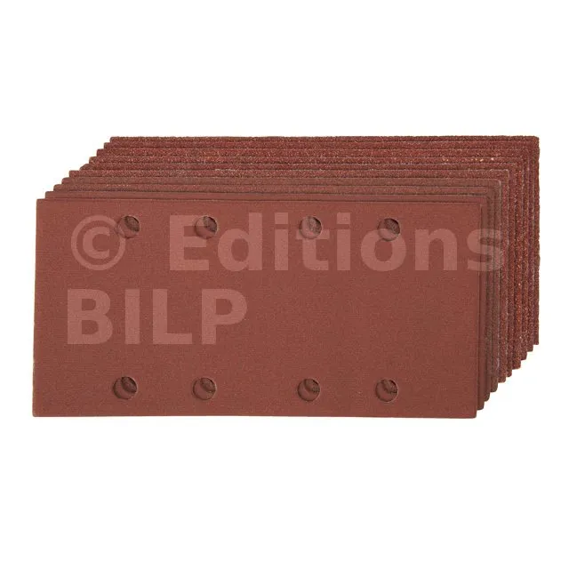 Lot de 10 feuilles abrasives 1/3 auto-agrippantes perforées - Grains assortis 2 x 60mm, 3 x 80mm, 3 x 120mm, 2 x 240mm - Réf. 892499