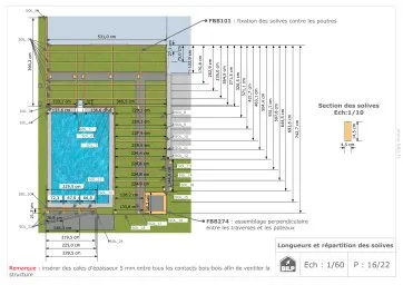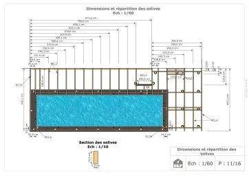Les plans de structure à l’échelle sont faciles à lire et à comprendre. Ils vous permettrons de réaliser vous-même la structure de votre terrasse. Les détails de réalisation sont indiqués. Nous calculons et optimisons les dimensions et les sections de pièces de bois.