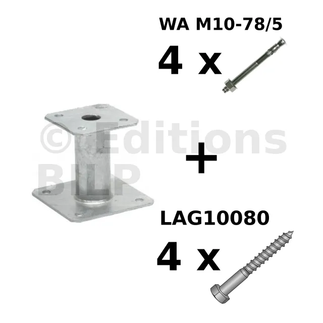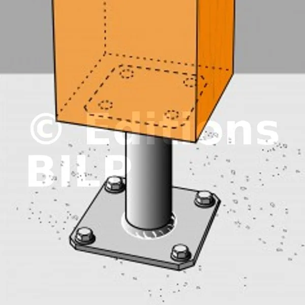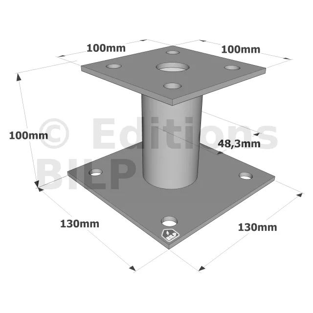 Pied de poteau fixe "prêt-à-fixer", corps rond, hauteur : 100 mm - Réf. KIT FIX PPA100