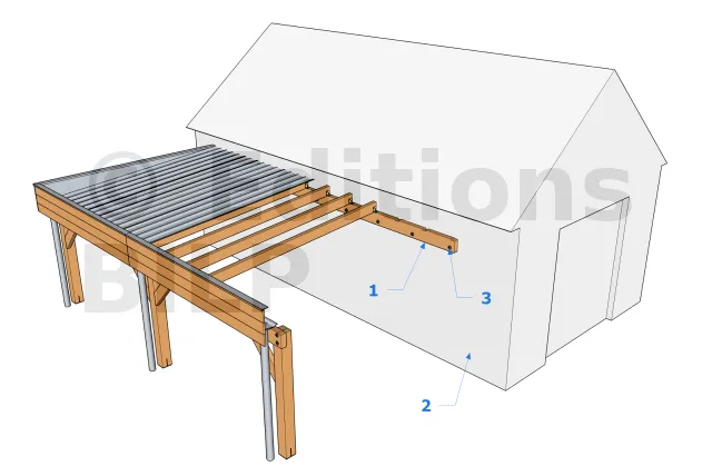 - 2. Percer la panne muralière : après avoir obtenu les points de fixation de la panne, percez avec des mèches à bois de diamètre égal au diamètre de la tige filetée.